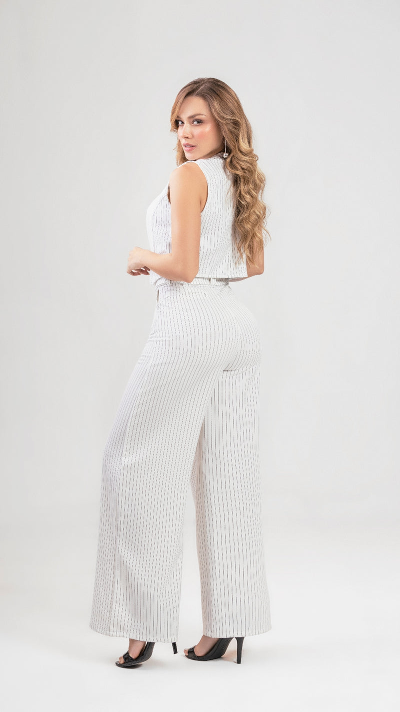 C003 Conjunto de Chaleco y Pantalón Palazzo a Rayas