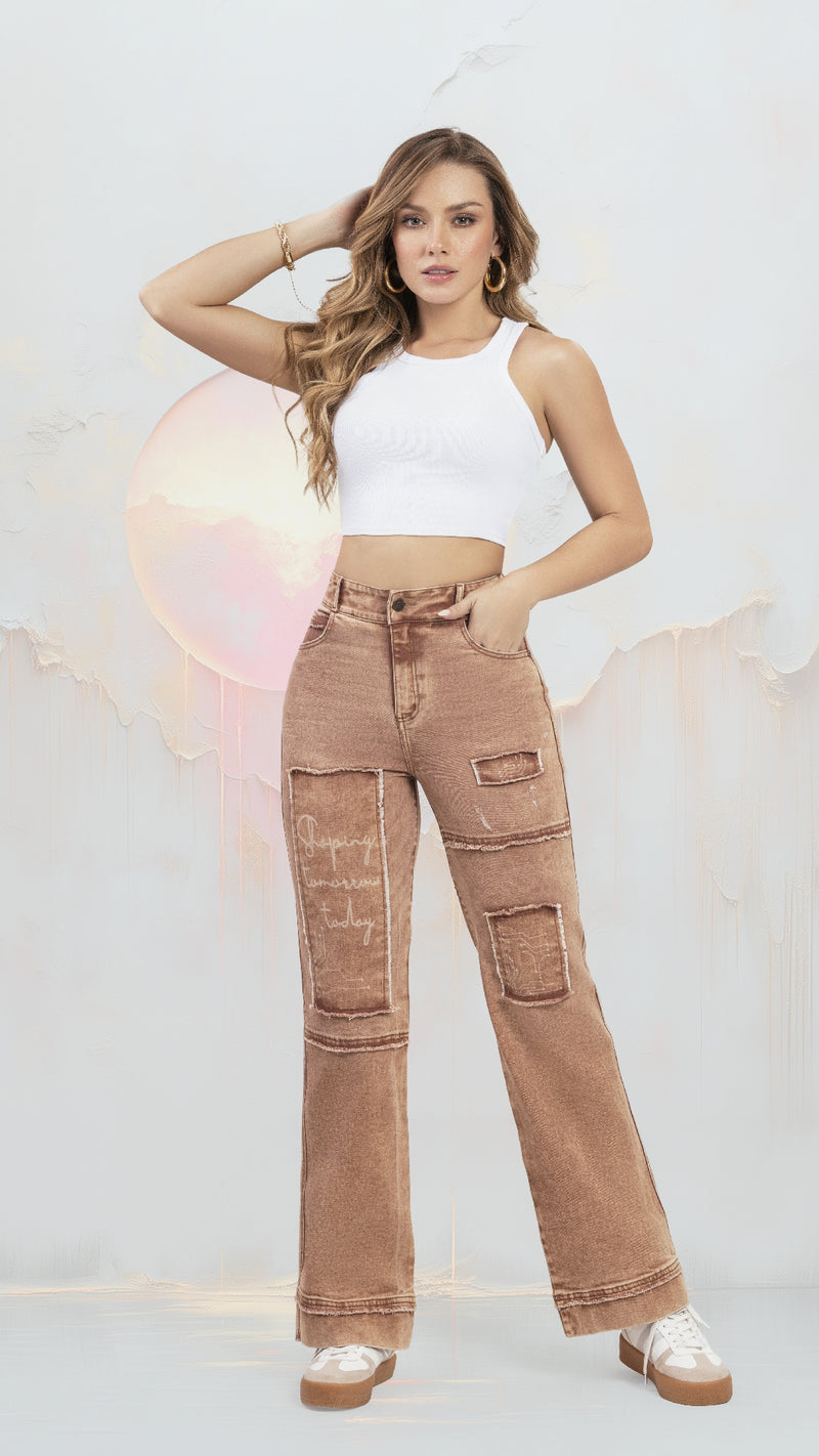 1449 Pantalón Cargo Carisma Wide Leg Beige